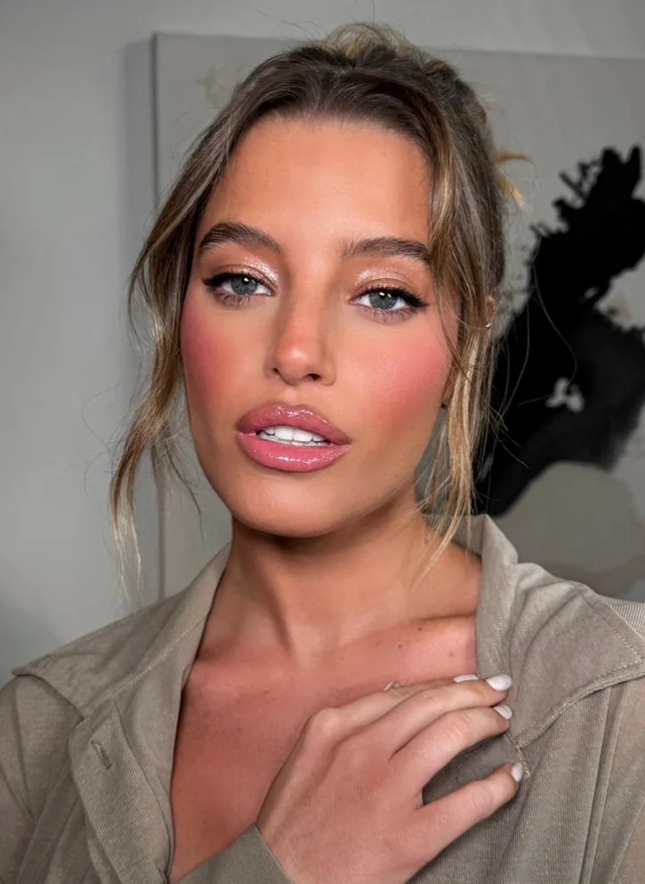 El contorno rígido queda fuera de juego. La temporada pide dimensión suave: bronceadores en gel o crema que se funden con la piel, rubores cálidos (coral, terracota, durazno) y puntos de luz discretos. El bronceado se coloca alto (sienes, pómulo superior, puente de la nariz) para un efecto sun-kissed sin líneas duras. El soft sculpt devuelve estructura sin endurecer rasgos.