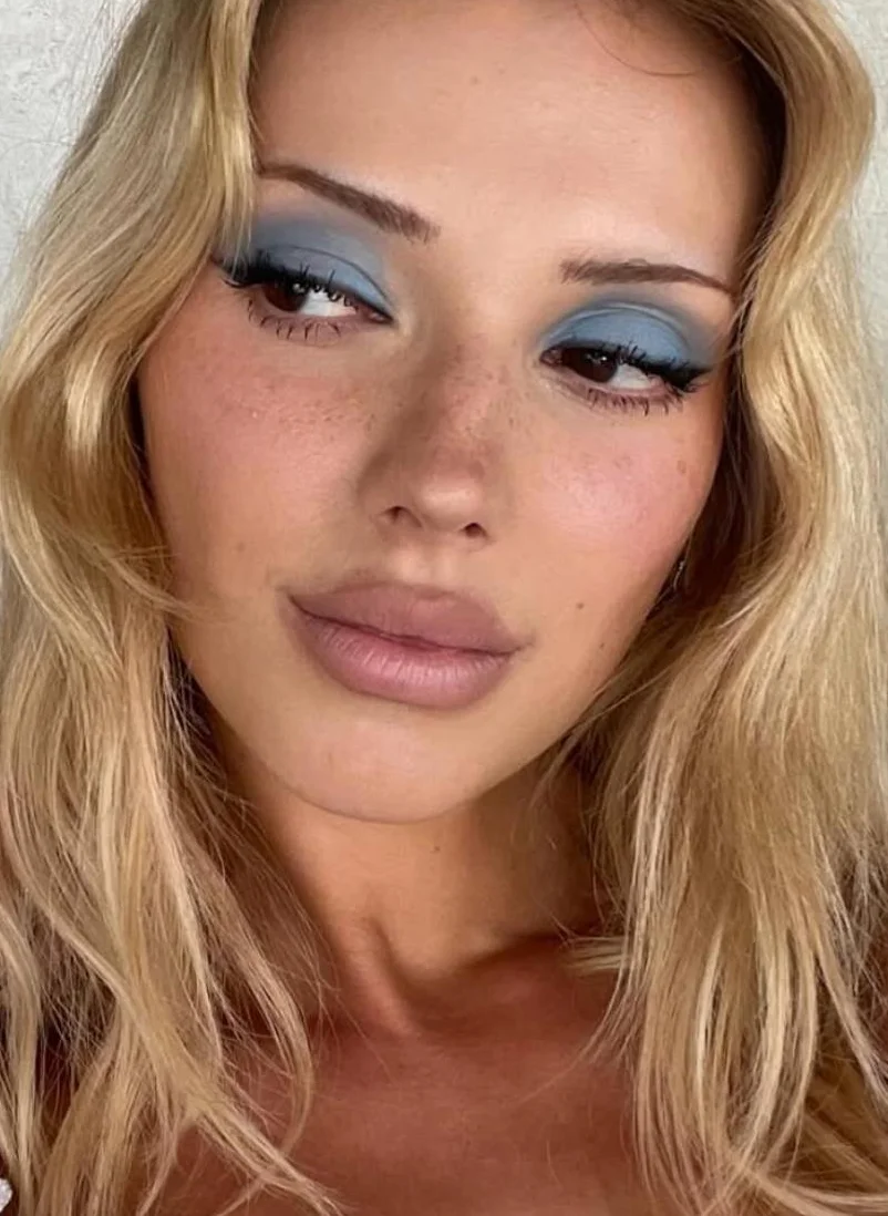 Vuelven los lavados de color en lila, malva, menta, azul cielo o aqua. El acabado es translúcido, luminoso y de textura en crema, casi como una acuarela. Para realzar, un shimmer fino en el centro del párpado aporta dimensión sin parecer “glitter”.